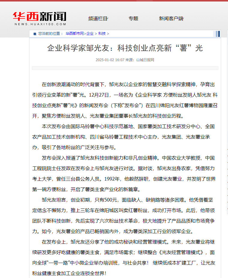 轉(zhuǎn)載華西新聞——企業(yè)科學家鄒光友:科技創(chuàng)業(yè)點亮新“薯”光