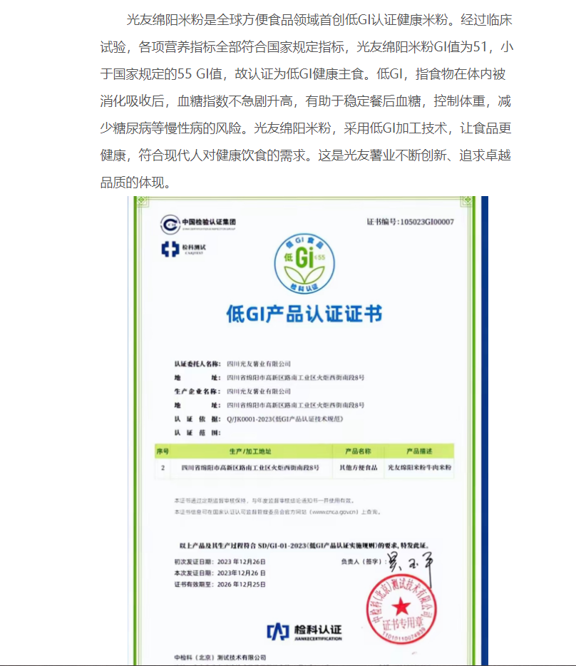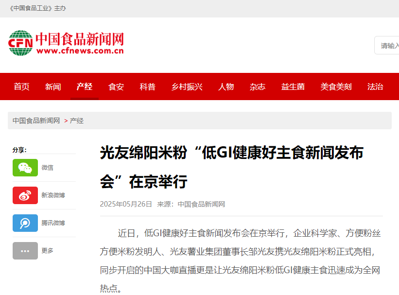 轉(zhuǎn)載中國(guó)食品新聞網(wǎng)——光友綿陽(yáng)米粉“低GI健康好主食新聞發(fā)布會(huì)”在京舉行