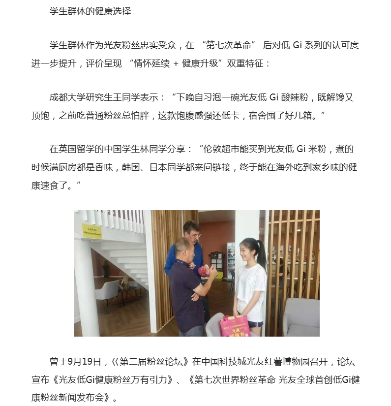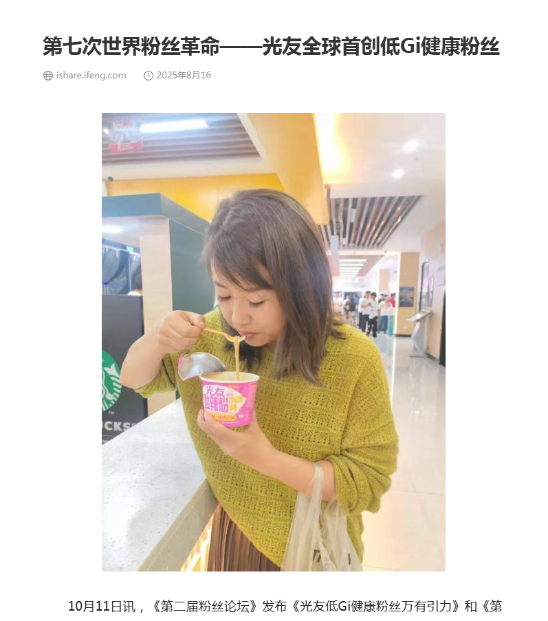 轉(zhuǎn)載鳳凰網(wǎng)-第七次世界粉絲革命——光友全球首創(chuàng)低Gi健康粉絲