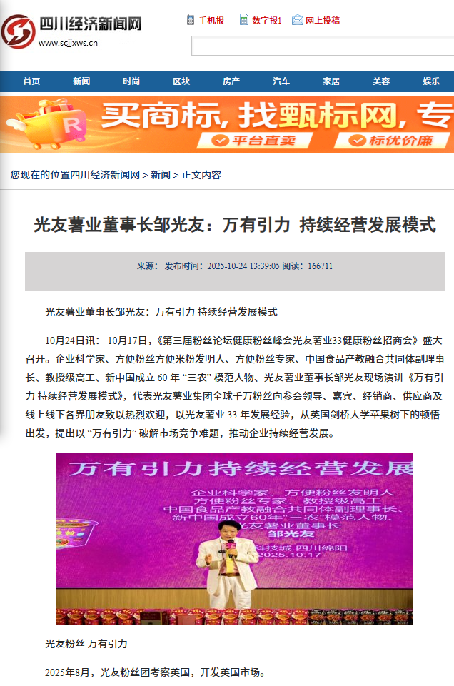 轉(zhuǎn)載四川經(jīng)濟(jì)新聞網(wǎng)-光友薯業(yè)董事長(zhǎng)鄒光友:萬有引力 持續(xù)經(jīng)營(yíng)發(fā)展模式