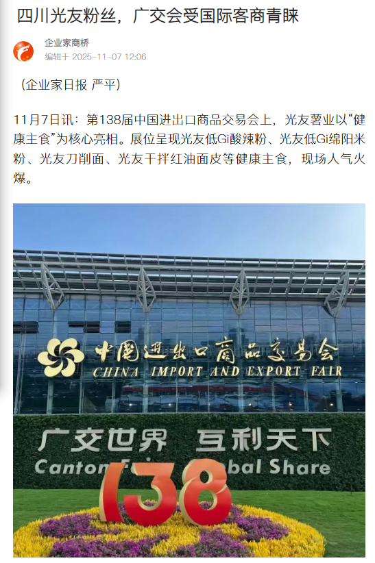 轉(zhuǎn)載搜狐網(wǎng)-四川光友粉絲,廣交會受國際客商青睞