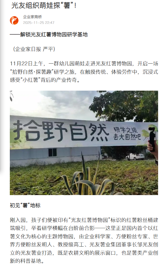 轉(zhuǎn)載搜狐網(wǎng)-光友組織萌娃探“薯”!
