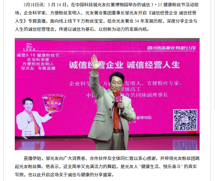 鄒光友專題直播《誠(chéng)信經(jīng)營(yíng)企業(yè) 誠(chéng)信經(jīng)營(yíng)人生》http://www.scjjxws.cn/xinwen/1223730.html